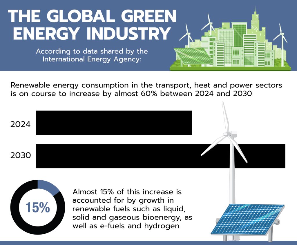 With 64% of consumers agreeing that purchasing sustainable products makes them happy, according to the FSC report, pivoting to accommodate consumer preferences by placing sustainability front and centre helps businesses to boost their brand reputation. In addition, by becoming more energy efficient, enterprises can drive down production and overhead costs, increasing long-term profitability. The attached infographic runs through some interesting global statistics about green energy.